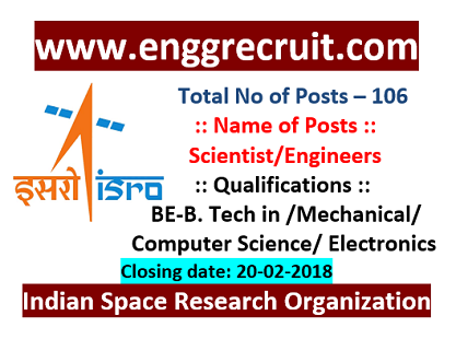 How to apply: The application for on-line registration will be hosted in the ISRO web-site between 31.01.2018 and 20.02.2018. Candidates may visit our website at www.isro.gov.in to register their applications on-line between 31.01.2018 and 20.02.2018. The candidates registered under National Career Services (NCS) portal and fulfilling the eligibility conditions may visit ISRO website and follow the application procedure as stated. Applications will be received on-line only.
