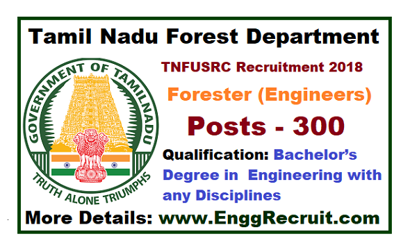“TNFUSRC Recruitment 2018 for Forester (Engineers) – 300 Posts“